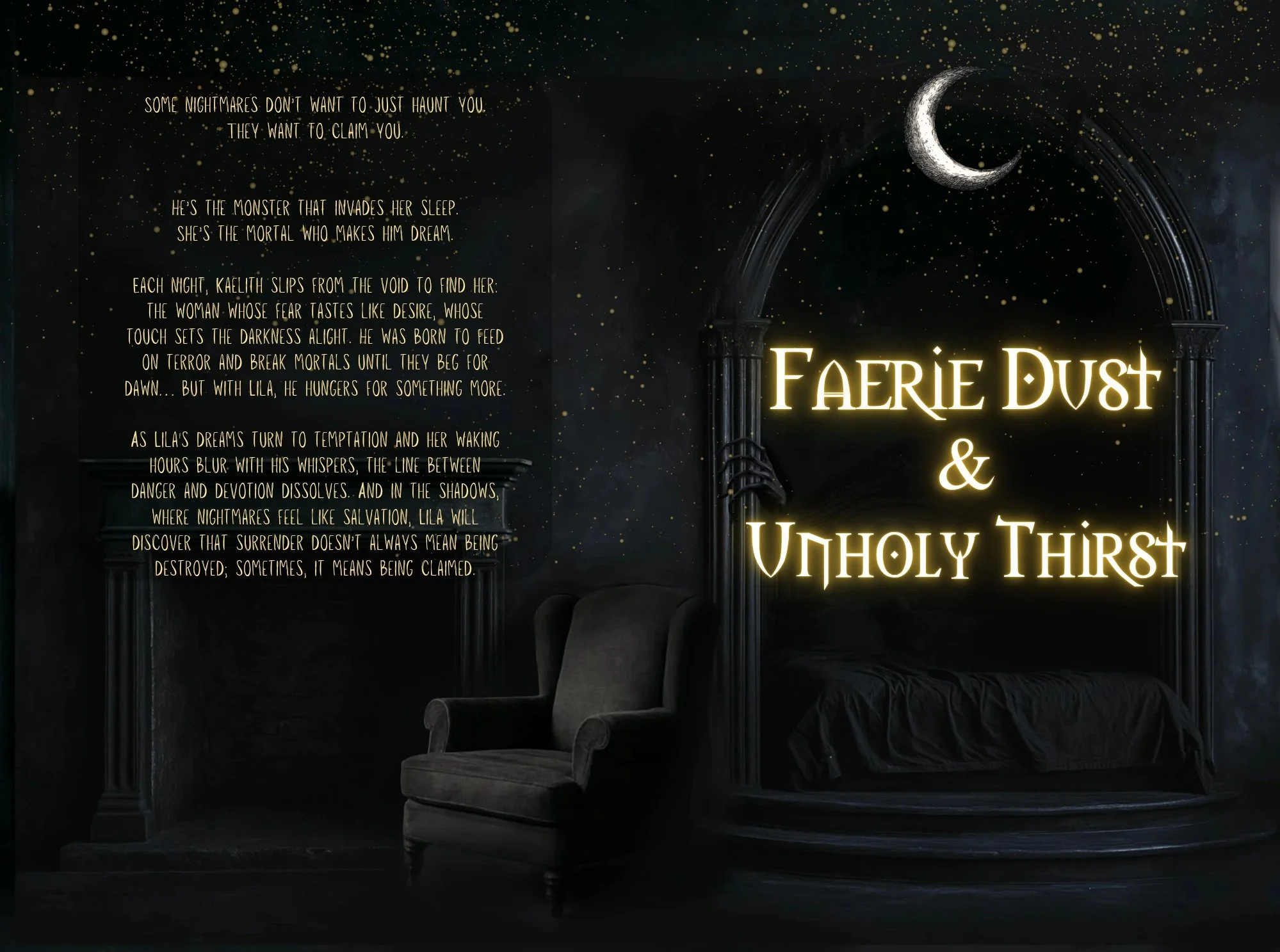 This listing is a pre-order for a signed Paperback copy of Faerie Dust & Unholy Thirst. This will ship on or before 11/29/25.